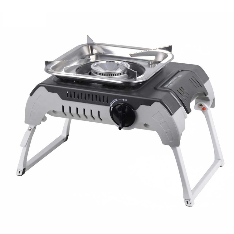 این اجاق گاز مجهز به صفحه بزرگ است که به کاربر این امکان را میدهد تا بتواند از ظروف بزرگ سفری استفاده نماید ، همچنین وجود جرقه زن پیزوالکتریک در این اجاق کاربر را از همراه داشتن کبریت و فندک مجزا بی نیاز می کند ، بر روی بدنه اجاق نیز یک اهرم یا پیچ جهت تنظیم حرارت قدرت شعله تعبیه شده است.