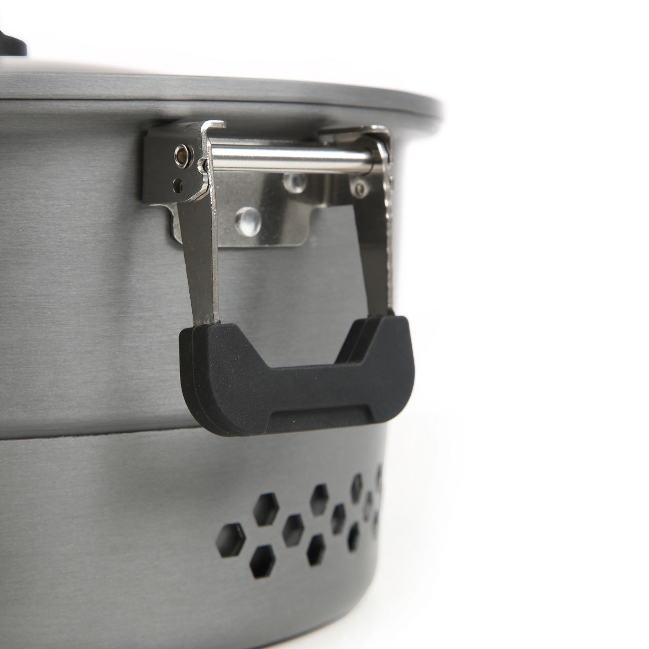 دسته این قابلمه قابلیت جدا شدن دارد، که این امر نه تنها حمل آن را سادهتر میکند، بلکه امکان استفاده راحتتر از آن در شرایط مختلف کمپینگ و طبیعتگردی را فراهم میسازد. این دسته همچنین مجهز به عایق حرارتی است که از داغ شدن بیش از حد آن در هنگام پخت و پز جلوگیری میکند و امنیت شما را تضمین میکند. قابلمه همچنین با یک کیسه نگهداری ارائه میشود که امکان جابجایی و نگهداری آن را بدون نگرانی از آسیب دیدن، فراهم میکند.