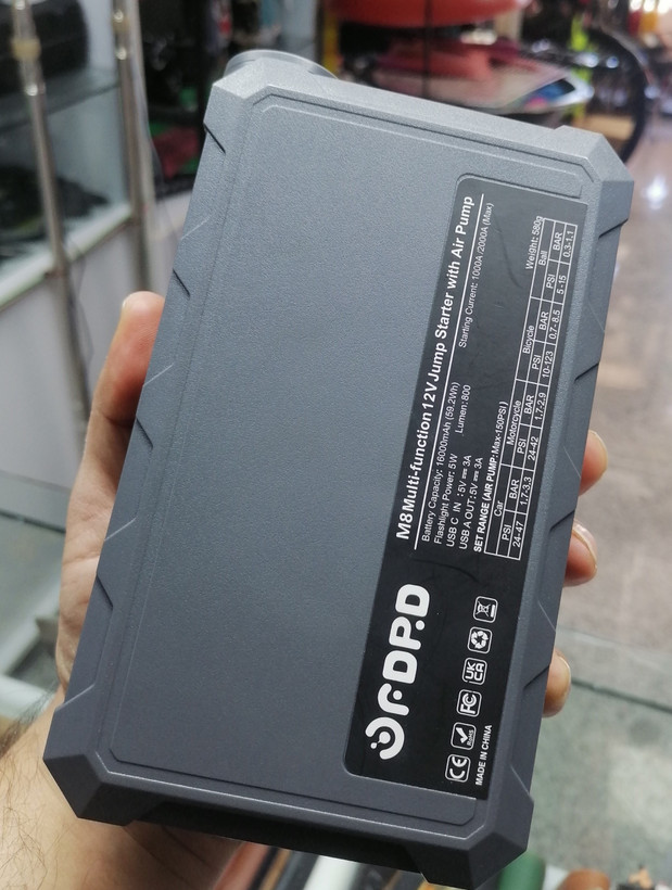 دارای کمپرسور باد با نازلهای مختلف برای باد کردن انواع لاستیک خودرو، موتور سیکلت ، دوچرخه و لوازم بادی مختلف دیگر