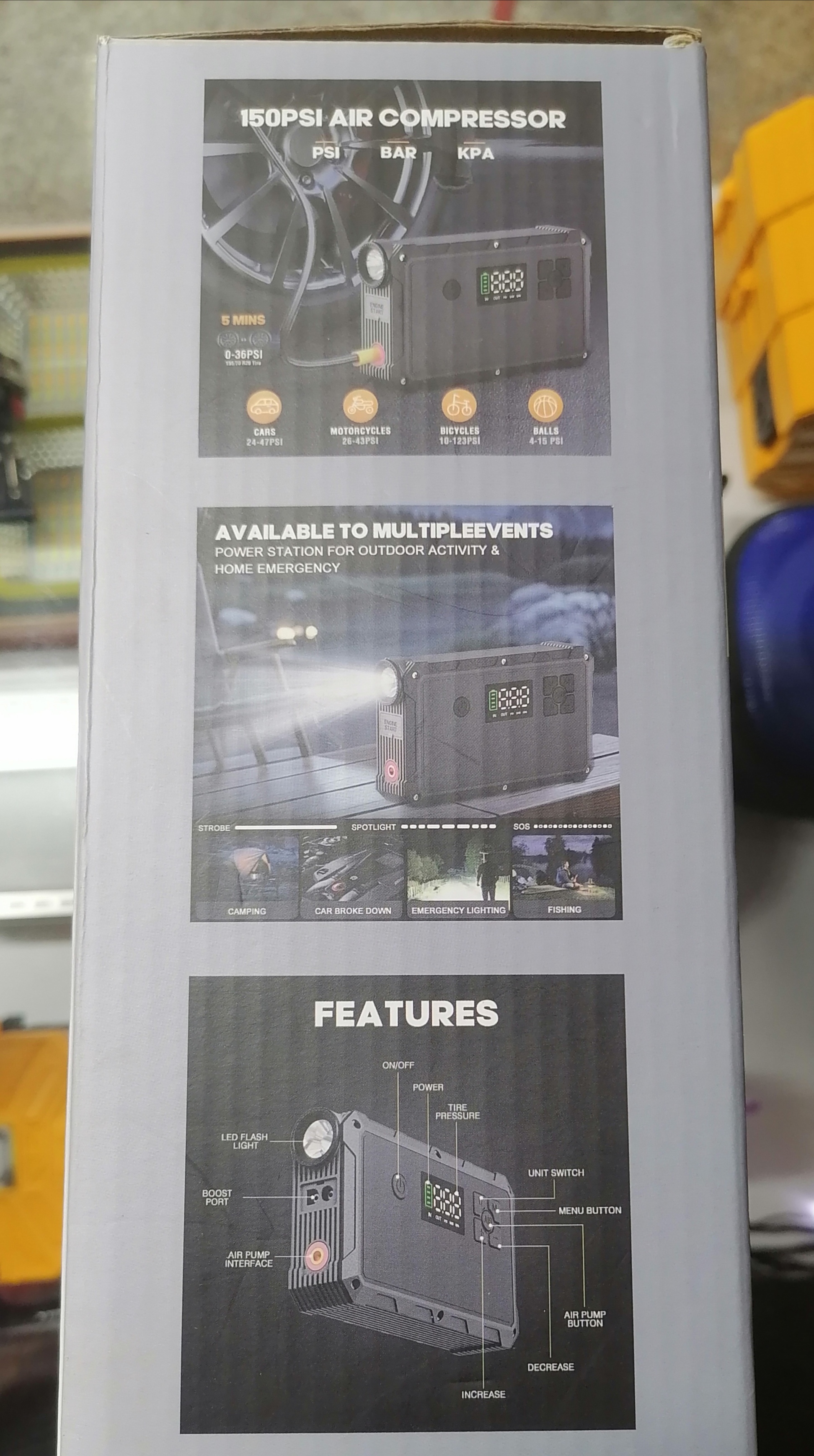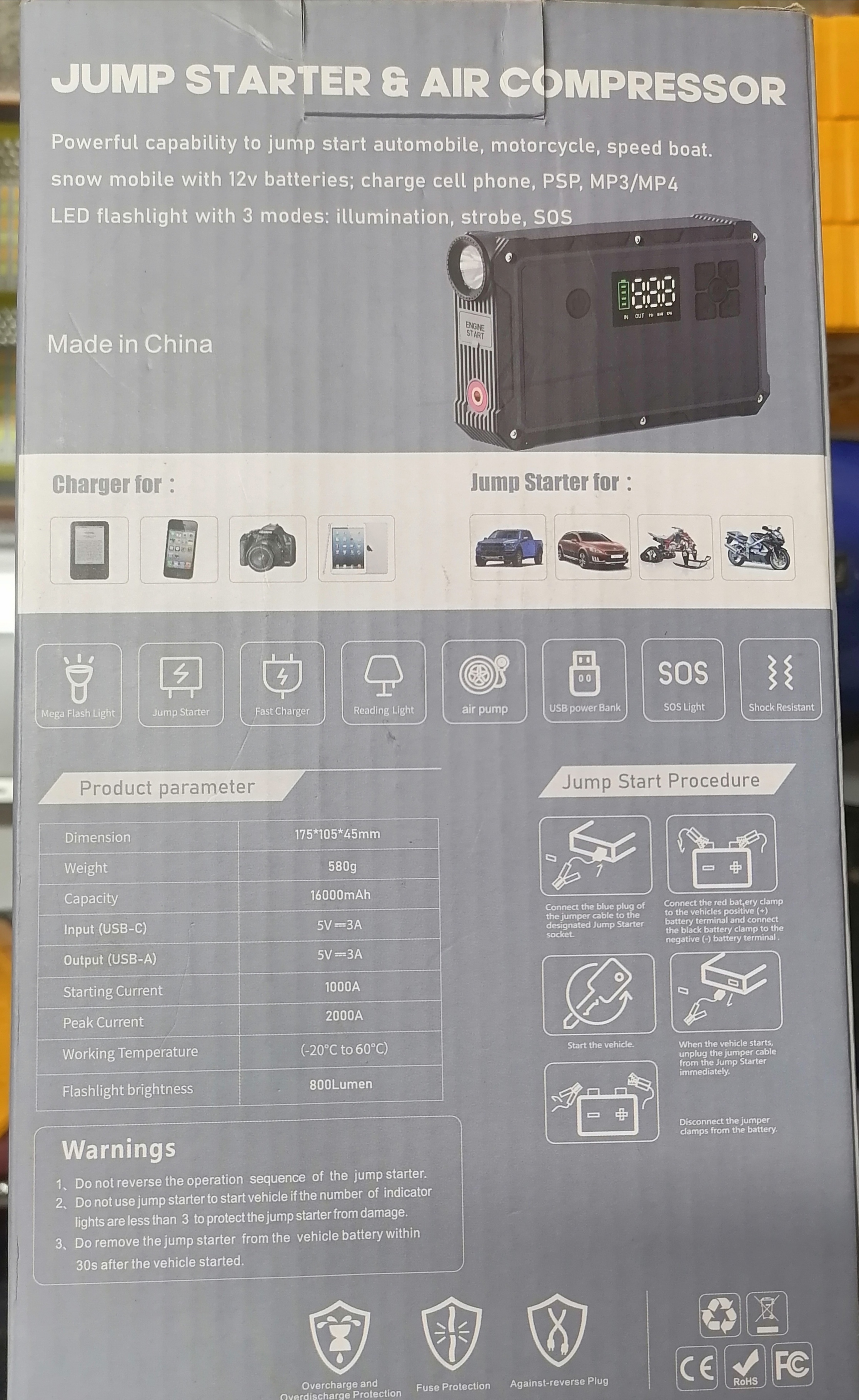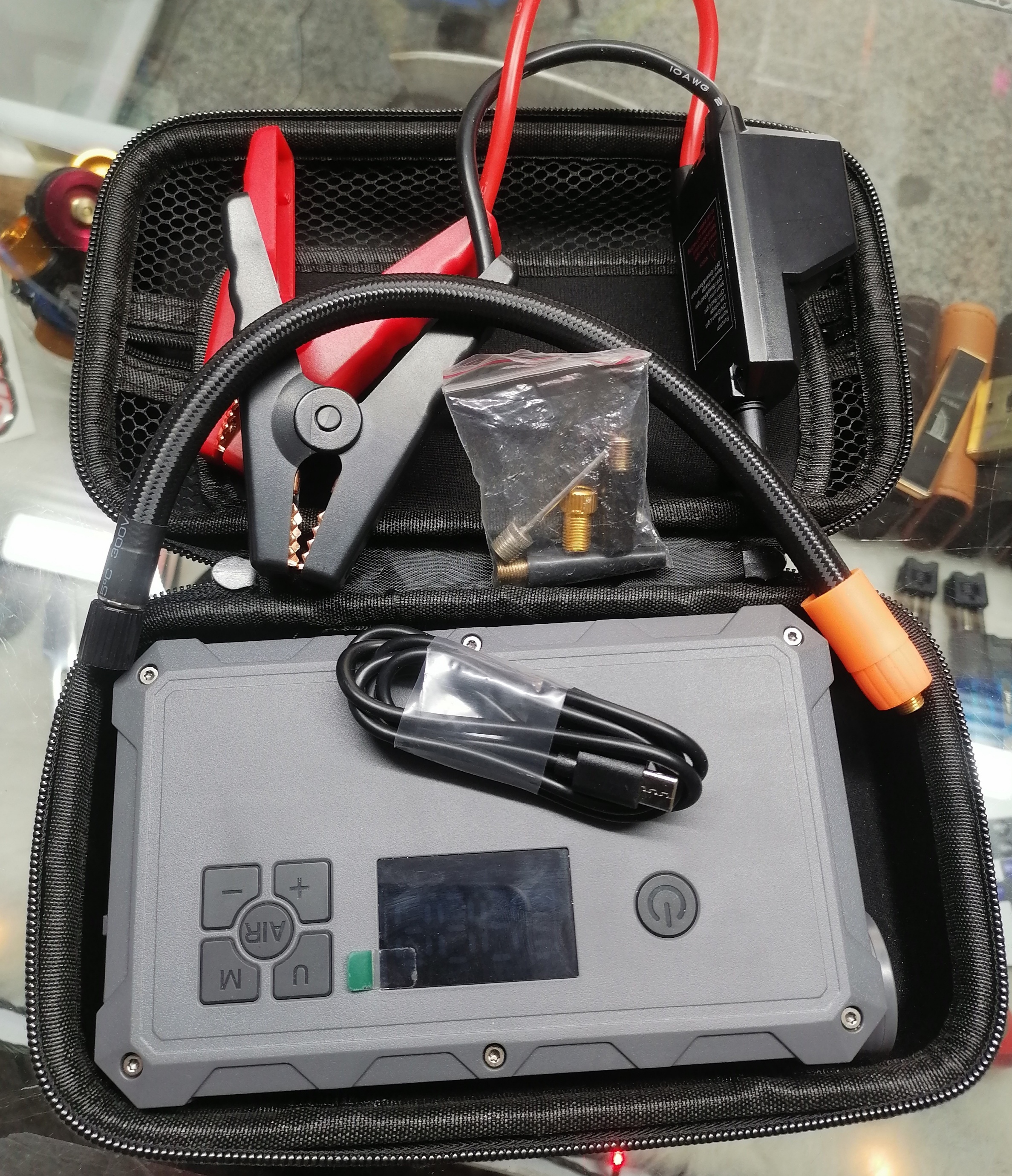 دارای کمپرسور باد با نازلهای مختلف برای باد کردن انواع لاستیک خودرو، موتور سیکلت ، دوچرخه و لوازم بادی مختلف دیگر